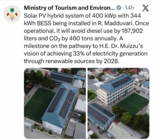 މަޑުއްވަރީގައި ސޯލާ ޕީވީ ހައިބްރިޑް ސިސްޓަމެއް ބަހައްޓަނީ