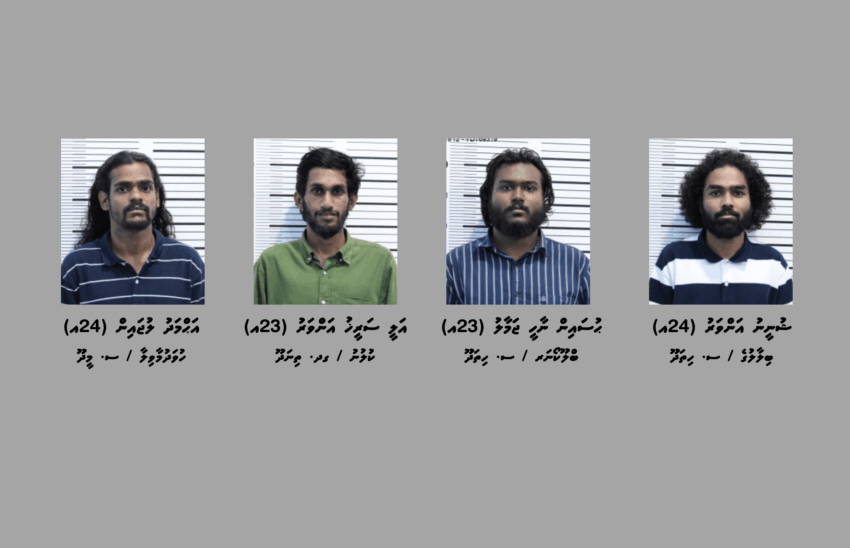 މި މައްސަލައާ ގުޅިގެން ހައްޔަރުކޮށްފައިވަނީ ސ. ހިތަދޫ / ބިލާލުގެ، ޝުނީނު އަންވަރު (24އ) އާއި ސ. ހިތަދޫ / ބްލޫކޯނަރ، ޙުސައިން ނާހީ ޖަމާލު (23އ) އާއި ގދ. ތިނަދޫ / ކުލުނު، އަލީ ސަރީޚު އަންވަރު (23އ) އާއި ސ. މީދޫ / ހުވަދުމާވިލާ، އަޙްމަދު ލުޖައިން (24އ) އެވެ.